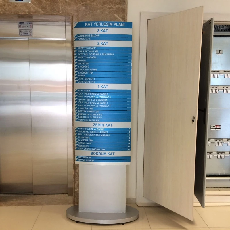 Estetik: Yönlendirme tabelaları, bulundukları mekanın estetiği ile uyumlu olmalıdır. Modern ve profesyonel bir görüntü, ziyaretçilerin mekânda olumlu bir deneyim yaşamasına katkıda bulunur.